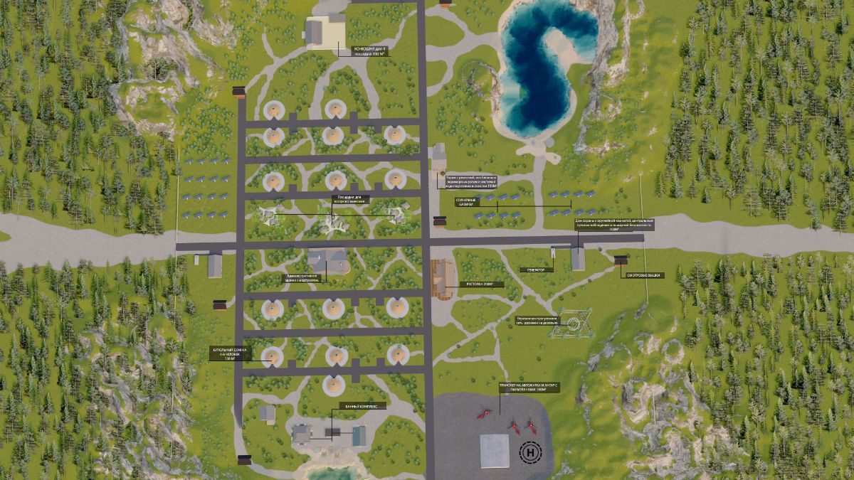 МЫ РАДЫ ПРЕДСТАВИТЬ ВАМ ЭСКИЗ ПО ЗАСТРОЙКЕ БАЗЫ ОТДЫХА.