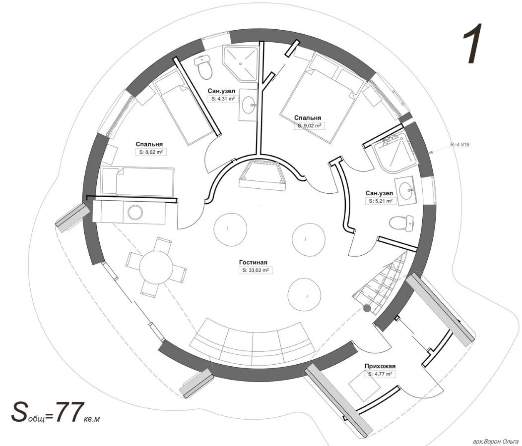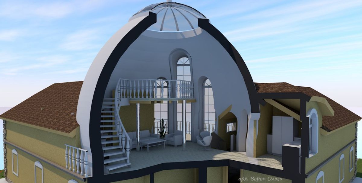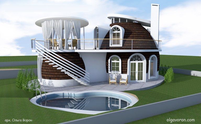 Ознакомьтесь пожалуйста с проектами куполных домов из лёгких бетонов от архитектора Ольги Ворон. Дизайн и стилевые решения таких домов очень красивы.